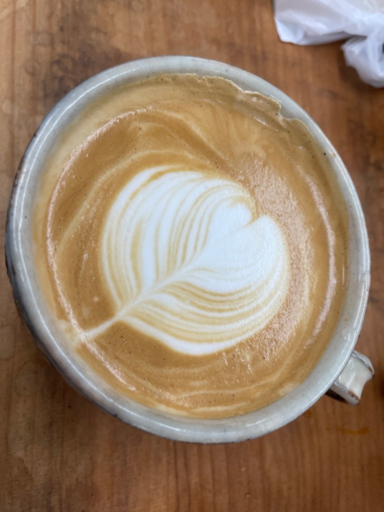 さて、こんな肌寒い雨の日にオーダーが増えるのが、温かいドリンクです。今日は朝から、ひさしぶりに「カフェラテ」のご注文をいただき、心を込めてお作りしました。