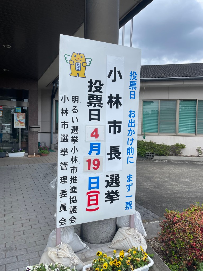 さて、本日は合間を縫って**「小林市長選挙」**の期日前投票(※または投票)へ行ってまいりました。